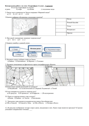 Контрольная работа по географии 6 класс: Гидросфера