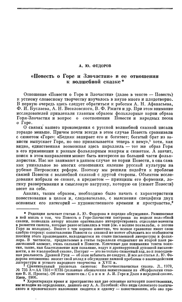 «ПОВЕСТЬ О ГОРЕ И ЗЛОЧАСТИИ» И ВОЛШЕБНАЯ СКАЗКА