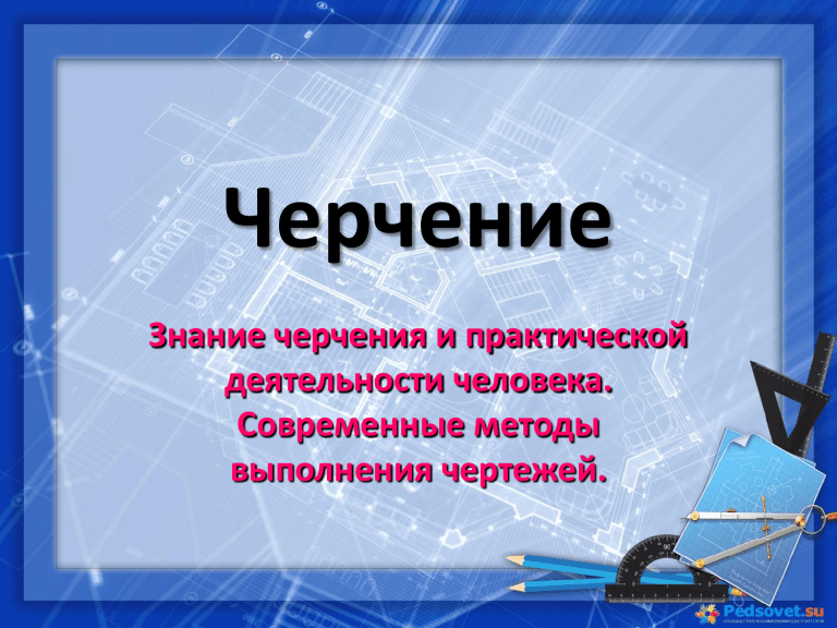 Черчение Знание черчения и практической деятельности человека. Современные методы выполнения чертежей. Из истории развития чертежа • Чертеж является одним из средств изучение предметов окружающего нас реального мира. Он прошел долгий путь развития. Минули столетия, прежде чем графические изображения обрели современный вид. • С начало чертежи выполняли на земле в том месте, где необходимо было вести строительство. Затем их стали выполнять на камне, глиняных плитах. • Слово «чертеж» исконно русское. В значении, близком к современному, изображение каких – либо предметов на бумаге, план чего – либо, слово «чертёж» употреблялось в русском языке по крайне мере с 16 века. Постепенно чертежи становились более совершенными. • На рисунке показан чертеж моста (как мы видели бы его сверху) и сторожевой башни (как мы видели бы ее спереди), относящейся к 17 веку • • • • • Чертежами пользовались многие выдающиеся русские изобретатели и инженеры. В 1586 г знаменитый пушечный мастер Андрей Чохов отлил колоссальную царь – пушку, а его ученики уже с начала 30–х гг. 17 в руководствовались чертежами при изготовлении орудий. Значительного рассвета достигла русская графика во время Петра I. До нас дошли многие кораблестроительные чертежи того времени, некоторые из них выполнены Петром I. Известны чертежи первой в мире универсальной паровой машины выдающегося русского изобретателя 18 в. И.И.Ползунова. Талантливый русский механик, конструктор и изобретатель17 в. И.П.Кулибин ( изготовил чертежи моделей моста через реку Нева) Чертеж паровоза братьев Черепановых 19в. Рисунок, диаграмма, карта, схема — все это примеры графических изображений. 90 80 70 60 Восток Запад Север 50 40 30 20 10 0 1 кв 2 кв 3 кв 4 кв Электрическая принципиальная схема • • Чертеж — графическое изображение изделия или его части — является основным конструкторским документом, по которому изготовляется, контролируется, устанавливается и ремонтируется изделие. Каждое изделие должно быть предварительно спроектировано конструктором. Аксонометрическая проекция детали Наглядные изображения, выполненные от руки и на глаз без точного соблюдения размеров предмета, называют техническими рисунками. Сборочные чертежи. Строительные чертежи Обман зрения при рассматривании рисунков представляет большой интерес для художников, конструкторов. Рассмотрим несколько примеров. • Что перед вами: ваза или два силуэта в окне? • Дано изображение двух женщин, старой и молодой. Черты лица старой женщины представлены полнее, чем молодой, но, в конце концов, оказывается видным и молодое лицо. Найдите его. ЧЕРТЕЖНЫЕ ИНСТРУМЕНТЫ, ПРИНАДЛЕЖНОСТИ И МАТЕРИАЛЫ Приспособления для выполнения чертежей. К чертежным материалам и принадлежностям относят бумагу, карандаши, резинки, кнопки, треугольники. Карандаши • Карандаш получил свое название от слияния двух тюркских слов: кара — черный и таш — камень. Далеким предком карандаша, наверное, можно считать головешку из костра первобытного человека, с помощью которой ему вдруг захотелось что-то изобразить на стене пещеры... • В ХVI веке англичане нашли у себя залежи графита. Из глыб этого мягкого камня выпиливали пластины, отшлифовывали, делили на грифели. Хрупкие стерженьки помещали в изящную оправу из тростника или красного дерева. Пользоваться такими карандашами могли то