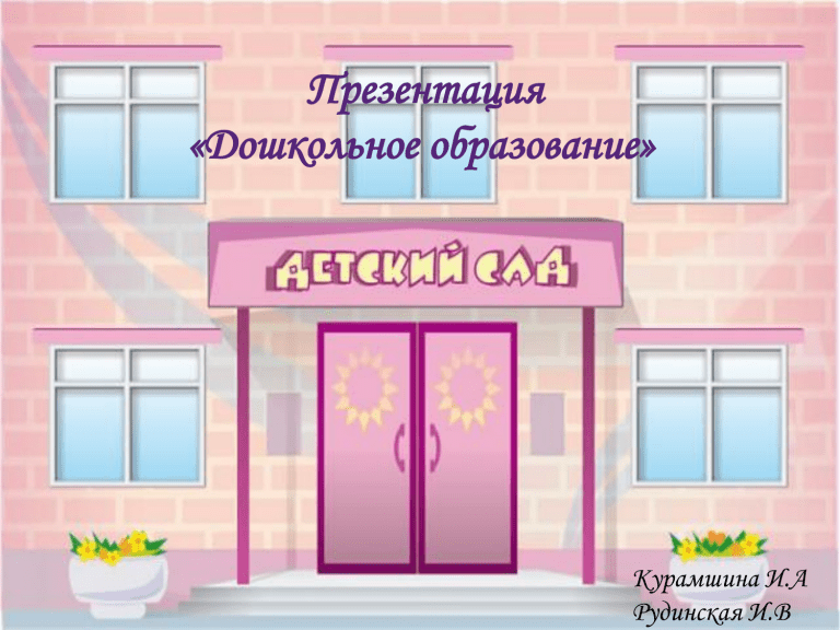 Презентация «Дошкольное образование» Курамшина И.А Рудинская И.В СОДЕРЖАНИЕ 1. История дошкольного образования в России. 2. Советская система дошкольного образования. 3. Программа работы детского сада. 4. Дошкольный возраст. ИСТОРИЯ ДОШКОЛЬНОГО ОБРАЗОВАНИЯ В РОССИИ В последней трети XIX века вслед за странами Западной Европы в России появляются новые типы образовательных заведений. Первый бесплатный, «народный детский сад» в России для детей горожан из низших слоев населения был открыт в 1866 году при благотворительном «Обществе дешевых квартир» в г. Санкт-Петербурге. В том же году А. С. Симонович открыла платный частный детский сад для детей интеллигенции[2]. К началу ХХ века в России было открыто довольно большое число дошкольных учреждений как платных для интеллигенции и рождающейся буржуазии, так и бесплатных детских садов, площадок, приютов, очагов для детей низших слоев населения, а также для детейсирот. В эти же годы возникла методика дошкольного воспитания, первым журналом, где были опубликованы систематические записки о формах и методах обучения детей дошкольного возраста стал «Детский сад» под редакцией А.Симонович. авторитет издания был достаточно высок, свидетельством тому стало участие в его работе и публикации К. Д. Ушинского. В 1871 году было создано Санкт-Петербургское общество содействия первоначальному воспитанию детей дошкольного возраста. Общество содействовало открытию курсов по подготовке женщин-воспитательниц в семьях и детских садах, а также проведению лекций по дошкольному воспитанию. К 1914 году в стране действовало несколько десятков детских садов. В 1913 — 1917 годах Вице-президентом Санкт-Петербургского Общества содействия дошкольному воспитанию была известный российский педагог Елизавета Ивановна Тихеева, занимавшаяся изучением вопросов дидактики и методики начального обучения. С 1913 года она руководила созданным при Обществе содействия дошкольному воспитанию детским садом, которым после 1917 года она руководила до 1928 года. СОВЕТСКАЯ СИСТЕМА ДОШКОЛЬНОГО ОБРАЗОВАНИЯ Начало государственной системы дошкольного образования в нашей стране было положено после принятия 20 декабря 1917 года «Декларации по дошкольному воспитанию». В этом документе были определены принципы советского дошкольного образования: бесплатность и доступность общественного воспитания детей дошкольного возраста. В 1918 году на базе Московских высших женских курсов по инициативе профессора К. Н. Корнилова был открыт второй Московский государственный университет, где организовался педагогический факультет с дошкольным отделением. Важной вехой создания государственной системы подготовки педагогов дошкольного образования стал первый Всероссийский съезд по дошкольному воспитанию, состоявшийся в Москве в 1919 году. Первая «Программа работы детского сада» вышла в 1934 году, а в 1938 году были опубликованы «Устав детского сада», определявший задачи работы, структуру и особенности функционирования дошкольных учреждений, и «Руководство для воспитателей детского сада», содержавшее методические указания по разделам работы с детьми. В 1937 году специальным постановлением Совнаркома вводятся ведомственные детские сады, в 1939 году устанавливаются типовые штаты для детских садов всех видов и ведомств. Программа работы детского сада Пер