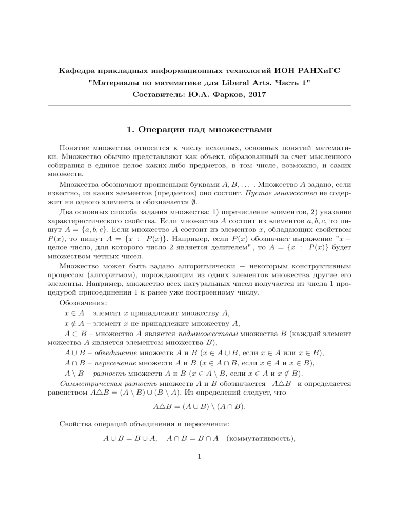 "Материалы по математике для Liberal Arts. Часть 1"