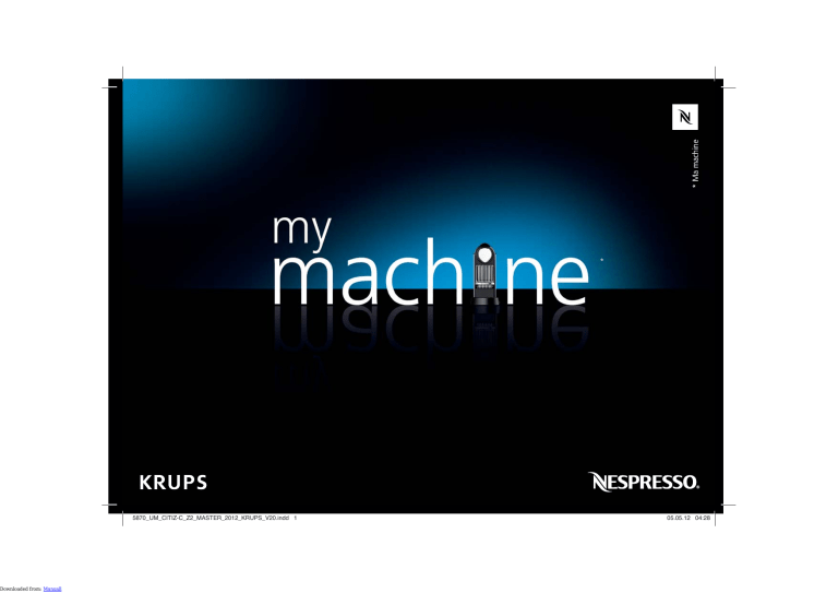 Downloaded from: Manuall * Ma machine * 5870_UM_CITIZ-C_Z2_MASTER_2012_KRUPS_V20.indd 1 05.05.12 04:28 CITIZ Nespresso, an exclusive system creating the perfect Espresso, time after time. All machines are equipped with a unique extraction system that guarantees up to 19 Bar pressure. Each parameter has been calculated with great precision to ensure that all the aromas from each Grand Cru can be extracted, to give the coffee body and create an exceptionally thick and smooth crema. Nespresso, un système exclusif pour reproduire à l9inûni un Espresso parfait. Toutes les machines Nespresso sont équipées d9un système d9extraction unique à très haute pression (jusqu9à 19 bar). Chaque paramètre est calculé avec précision pour révéler la totalité des arômes de chaque Grand Cru de café, lui donner du corps et générer une crème d9une densité et d9une onctuosité incomparables. NC0002756001_KRUPS XN 720_04.2012 CONTENT/CONTENU These instructions are part of the appliance. Read all instructions and all safety instructions before operating the appliance. Lorsque vous voyez ce symbole, veuillez vous référer au chapitre Précautions importantes aûn d9éviter tout risque de blessure ou de dommage. SAFETY PRECAUTIONS/CONSIGNES DE SECURITE ............................................... OVERVIEW/PRESENTATION .............................................................................. SPECIFICATIONS/SPECIFICATIONS .................................................................... ENERGY SAVING MODE/MODE D9ECONOMIE D9ENERGIE ...................................... FIRST USE OR AFTER LONG PERIOD OF NON-USE/PREMIERE UTILISATION OU APRES UNE LONGUE PERIODE DE NON-UTILISATION .......................................... COFFEE PREPARATION/PREPARATION DU CAFE ................................................. PROGRAMMING THE WATER VOLUME/PROGRAMMATION DU VOLUME D9EAU ...... EMPTYING THE SYSTEM BEFORE A PERIOD OF NON-USE AND FOR FROST PROTECTION, OR BEFORE A REPAIR/VIDANGE DU SYSTEME AVANT UNE PERIODE D8INUTILISATION, POUR LA PROTECTION CONTRE LE GEL OU AVANT UNE REPARATION ............................................................................ RESET TO FACTORY SETTINGS/ RESTAURER LES REGLAGES USINE ..................................................................... 5870_UM_CITIZ-C_Z2_MASTER_2012_KRUPS_V20.indd 2 03 11 11 12 13 14 15 DESCALING/DETARTRAGE ................................................................................ CLEANING/NETTOYAGE .................................................................................... TROUBLESHOOTING/PANNES ........................................................................... CONTACT THE NESPRESSO CLUB/CONTACTER LE CLUB NESPRESSO ....................... DISPOSAL AND ENVIRONMENTAL PROTECTION/ RECYCLAGE ET PROTECTION DE L8ENVIRONNEMENT ........................................... ECOLABORATION: ECOLABORATION.COM/ ECOLABORATION: ECOLABORATION.COM .......................................................... LIMITED WARRANTY/GARANTIE LIMITEE .......................................................... 18 20 21 22 22 23 24 16 17 05.05.12 04:28 EN FR SAFETY PRECAUTIONS CAUTION: the safety precautions are part of the appliance. Read them carefully before using your new appliance for the orst time. Keep them in a place where you can ond and refer to them later on. CAUTION: when you see this sign, please refer to the safety precautions to avoid possible harm and damage. INFORMATION: when you see this sign, please take note of the advice for the correct and safe usage of your appliance. t5IFBQQMJBODFJTJOUFOEFEUPQSFQBSFCFWFSBHFTBDDPSEJOH to these instructions. t%POPUVTFUIFBQQMJBODFGPSPUIFSUIBOJUTJOUFOEFEVTF t5IJTBQQMJBODFIBTCFFOEFTJHOFEGPSJOEPPSBOEOPOFYUSFNF temperature conditions use only. t1SPUFDUUIFBQQMJBODFGSPNEJSFDUTVOMJHIUFõFDU QSPMPOHFEXBUFS splash and humidity. t5IJTBQQMJBODFJTJOUFOEFEUPCFVTFEJOIPVTFIPMETBOETJNJMBS applications only such as: staff kitchen areas in shops, offices and other working environments, farm houses; by clients in hotels, motels and other residential environments; bed and breakfast type environments. t5IJTBQQMJBODFDBOCFVTFECZDIJMESFOBHFEGSPNZFBSTBOEBCPWF and persons with reduced physical, sensory or mental capabilities or lack of experience and knowledge if they have been given supervision or instruction concerning use of the appliance in a safe way and understand the hazards involved. Children shall not play with the appliance. Cleaning and user maintenance shall not be made by children without supervision. t$IJMESFOTIPVMECFTVQFSWJTFEUPFOTVSFUIBUUIFZOPUQMBZXJUI the appliance. t5IFNBOVGBDUVSFSBDDFQUTOPSFTQPOTJCJMJUZBOEUIFXBSSBOUZXJMMOPU apply for any commercial use, inappropriate handling or use of the appliance, any damage resulting from use for other purposes, GBVMUZPQFSBUJPO OPOQSPGFTTJPOBMTSFQBJSPSGBJMVSFUPDPNQMZXJUI the instructions. 2 3 5870_UM_CITIZ-C_Z2_MASTER_2012_KRUPS_V20.indd 3 05.05.12 04:28 SAFETY PRECAUTIONS Avoid risk of fatal electric shock and ore. t*ODBTFPGBOFNFSHFODZJNNFEJBUFMZSFNPWFUIFQMVHGSPN the power socket. t0OMZQMVHUIFBQQMJBODFJOUPTVJUBCMF FBTJMZBDDFTTJCMF earthed mains connections. Make sure that the voltage of the power source is the same as that speciûed on the rating plate. The use of an incorrect connection voids the warranty. The appliance must only be connected after installation. t%POPUQVMMUIFDPSEPWFSTIBSQFEHFT DMBNQJUPSBMMPXJUUPIBOHEPXO t,FFQTUIFDPSEBXBZGSPNIFBUBOEEBNQ t*GUIFTVQQMZDPSEJTEBNBHFE JUNVTUCFSFQMBDFECZUIFNBOVGBDUVSFS JUT service agent or similarly qualiûed persons. t*GUIFDPSEJTEBNBHFE EPOPUPQFSBUFUIFBQQMJBODF t3FUVSOUIFBQQMJBODFUPUIFNespresso Club or to a Nespresso authorized representative. t*GBOFYUFOTJPODPSEJTSFRVJSFE VTFPOMZBOFBSUIFEDPSEXJUIBDPOEVDUPS DSPTTTFDUJPOPGBUMFBTUNN2 or matching input power. t5PBWPJEIB[BSEPVTEBNBHF OFWFSQMBDFUIFBQQMJBODFPOPSCFTJEFIPU surfaces such as radiators, stoves, ovens, gas burners, open üame, or similar. 5870_UM_CITIZ-C_Z2_MAST