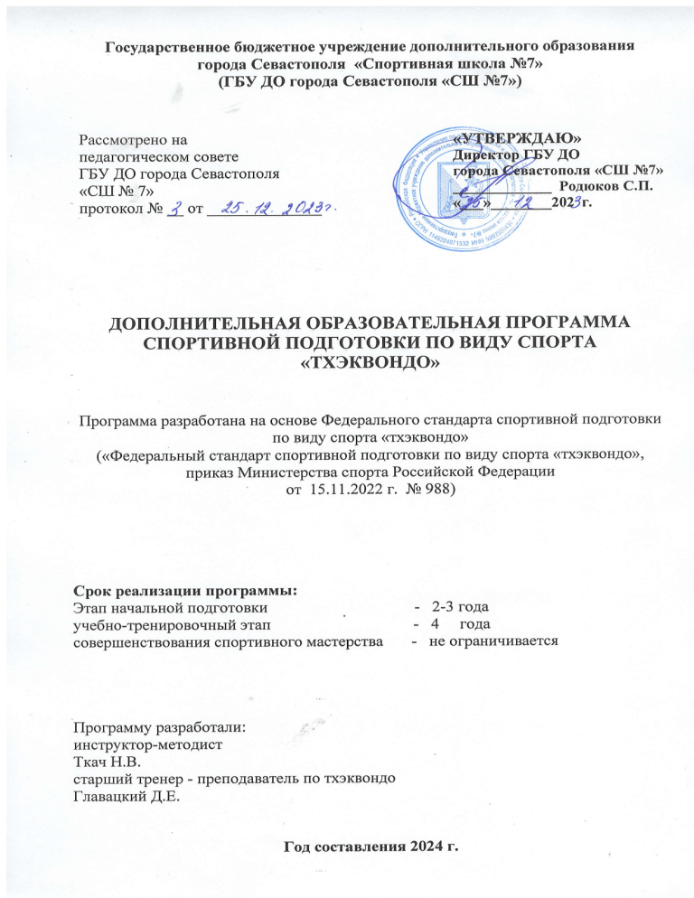 IV. Рабочая программа по виду спорта тхэквондо .................................................... 43