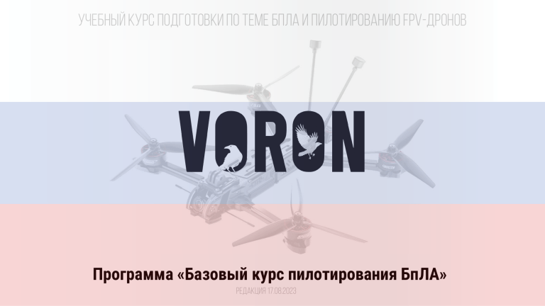 Учебный КУРС ПОДГОТОВКИ ПО ТЕМЕ БпЛА И ПИЛОТИРОВАНИЮ FPV-ДРОНОВ Программа «Базовый курс пилотирования БпЛА» Редакция 17.08.2023 базовый курс FPV-пилотирования 1-ый и 2-ой день обучения 01 Введение в курс 02 Виды БПЛА по конструкции 03 История БПЛА 01 Введение в курс Курс обучения полностью бесплатный Курс представляет собой онлайн лекции и материалы для самостоятельного изучения, для этого эфиры трансляции каждой лекции и вопросы для закрепления материала выкладываются в группе. Эфиры и вопросы выкладываются в этой теме, необходимо зарегистрироваться База знаний — 3-й поток 01 Введение в курс БПЛА – беспилотный летательный аппарат Летательный аппарат без пилота. Управление осуществляется 3 способами: 1. По радиоканалу с пульта управления. 2. Программируется полетный контроллер и аппарат летит сам. 3. Комбинированный — сочетание двух этих способов. Силы, возникающие в полете, на примере самолета: 1. Тяга 2. Лобовое сопротивление 3. Подъемная сила 4. Вес 01 Введение в курс Условное разделение БПЛА по ТТХ на 4 группы МИКРО МИНИ Вес меньше Вес до Время нахождения в воздухедо Время нахождения в воздухедо Высота полета Высота полета СРЕДНИЕ ТЯЖЕЛЫЕ БЕСПИЛОТНИКИ Вес до Вес превышает Время нахождения в воздухе до Время нахождения в воздухе более Высота полета Высота полета 10 кг 60 мин 1км 1т 15 ч 10 км 50 кг 5ч 3-5 км 1т 24 ч 20 км 02 Виды БПЛА по конструкции Классификация БПЛА по конструкции 1. БПЛА самолетного типа. 2. Мультироторные БПЛА 3. БПЛА аэростатического типа 4. Гибридные модели БПЛА самолетного типа Мультироторные БПЛА БПЛА аэростатичного типа Гибридные модели 02 Виды БПЛА по конструкции БПЛА самолетного типа Подъемная сила создается аэродинамическим способом за счет напора воздуха, набегающего на неподвижное крыло. Большая дальность полета, скорость и высота. Обычно нужна катапульта или взлетнопосадочная полоса, но есть маленькие, которые могут быть запущены рукой. При посадке БПЛА применяются уловители (сетки, тросы, парашюты, или посадочные полосы). К этому типу относятся БПЛА с применением эффекта Коанда. 02 Виды БПЛА по конструкции Мультироторные БПЛА К этой группе относятся БПЛА, имеющие 2 и более несущих винта. Реактивные моменты уравновешиваются за счет вращений несущих винтов попарно в разные стороны или наклоны вектора тяги каждого винта в нужном направлении. 02 Виды БПЛА по конструкции БПЛА аэростатического типа Подъемная сила создается преимущественно за счет архимедовой силы, действующей на баллон, заполненным легким газом. Этот класс представлен, в основном, беспилотными дирижаблями. Преимущества: большая грузоподъемность, дальность и беспосадочность полета. 02 Виды БПЛА по конструкции Модели гибридного типа Такие модели имеют признаки как самолетов, так и вертолетов. Представлены автожирами и конвертопланами. Автожир имеет схему, подобную самолету, у которого в качестве крыла установлен свободно-вращающийся винт. Конвертоплан - летательный аппарат с поворотными винтами, который на взлете и при посадке работают как подъемный, а в горизонтальном полете как тянущие, при этом в полете подъемная сила обеспечивается крылом самолетного типа. Ведет себя как вертолет на взлете и посадке и как самолет при полете. 03 История БПЛА Применение беспилотный летательный аппарат и типа конструкции История беспилотного воздушного оружия насчитыв