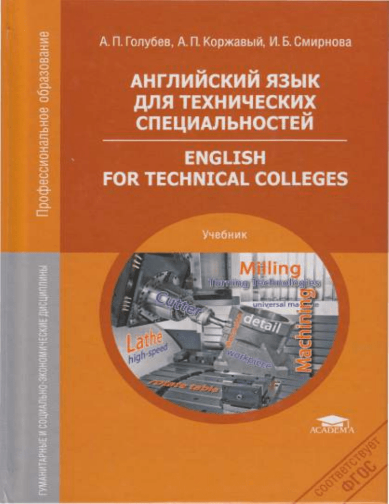 ПРОФЕССИОНАЛЬНОЕ ОБРАЗОВанИЕ А. П. голубев, А. П. коржавый, и. б. смирнова английский язык для технических специальностей ENGLISH for TECHNICAL COLLEGES Учебник Рекомендовано Федеральным государственным автономным учреждением «Федеральный институт развития образования» (ФГАУ «ФИРО») в качестве учебника для использования в учебном процессе образовательных учреждений, реализующих программы СПО по всем техническим специальностям Регистрационный номер рецензии 197 от 10 мая 2012 г. ФГАУ «ФИРО» 4-е издание, стереотипное УДК 802.0(075.32) ББК 84.2Англ-9я723 Г621 А в т о р ы: А. П. Голубев — общая редакция, раздел II (теоретический материал); А. П. Коржавый — раздел II (практическая часть), раздел III; И. Б. Смирнова — разделы I и IV Р е ц е н з е н т ы: старший преподаватель кафедры иностранных языков Калужского филиала МГТУ им. Н.Э.Баумана И. В. Журавлева; преподаватель Калужского техникума электронных приборов О. И. Иевлева Г621 Голубев А. П. Английский язык для технических специальностей = English for Technical Colleges : учебник для студ. учреждений сред. проф. образования / А. П. Голубев, А. П. Коржавый, И. Б. Смирно­ва. — 4-e изд., стер. — М. : Издательский центр «Академия», 2014. — 208 с. ISBN 978-5-4468-0713-0 Учебник создан в соответствии с Федеральными государственными образовательными стандартами среднего профессионального образования по техническим специальностям, ОГСЭ.03 «Иностранный язык». В нем представлены основные общеупотребительные разговорные темы, диалоги и задания к ним. Доступное изложение основ фонетики и грамматики на русском языке, наличие упражнений для тренировки позволяет использовать учебник для начинающих. Отдельный раздел — «Профессиональная деятельность специалиста» — составляют темы, непосредственно связанные с будущей работой выпускников учебного учреждения. Для студентов учреждений среднего профессионального образования. УДК 802.0(075.32) ББК 81.2Англ-9я723 Оригинал-макет данного издания является собственностью Издательского центра «Академия», и его воспроизведение любым способом без согласия правообладателя запрещается ISBN 978-5-4468-0713-0 © Голубев А. П., Коржавый А.П., Смирнова И . Б., 2012 © Образовательно-издательский центр «Академия», 2012 © Оформление. Издательский центр «Академия», 2012 ПРЕДИСЛОВИЕ Данный учебник создан в соответствии с Федеральным государственным образовательным стандартом и программой по иностранному языку по техническим специальностям для учреждений среднего специального образования. Иностранный язык для технических специальностей в утвержденном Министерством образования и науки РФ классификаторе относится к циклу общих гуманитарных и социально-экономических дисциплин (ОГСЭ). Учебник состоит из ч е т ы р е х р а з д е л о в. Исходя из того, что одним из требований обучения является выработка элементарных умений общения, авторы сочли необходимым начать учебник с краткого вводно-коррективного фонетического курса, поскольку правильное произношение является одним из существенных условий общения. Следующий раздел, «Основы практической грамматики», содержит краткие теоретические сведения, контрольные вопросы по основным темам грамматики, учебные тексты и упражнения к ним. Авторы сочли нецелесообразным растягивать изучение грамматики на весь курс. По их мнению, лучше с самого начала дать достаточно краткую и целостную картину английской грамматики, к
