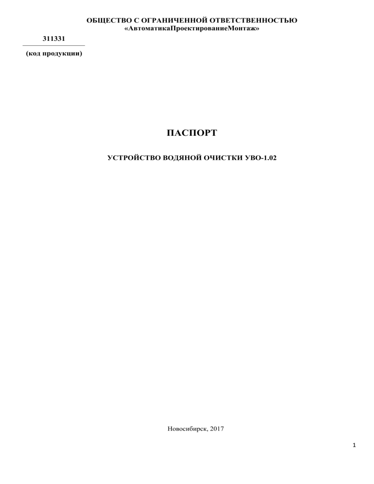 ОБЩЕСТВО С ОГРАНИЧЕННОЙ ОТВЕТСТВЕННОСТЬЮ «АвтоматикаПроектированиеМонтаж» 311331 (код продукции) ПАСПОРТ УСТРОЙСТВО ВОДЯНОЙ ОЧИСТКИ УВО-1.02 Новосибирск, 2017 1 ОГЛАВЛЕНИЕ 1. ВВЕДЕНИЕ.................................................................................................................... 3 2. ОПИСАНИЕ И РАБОТА .............................................................................................. 3 2.1. НАЗНАЧЕНИЕ ........................................................................................................... 3 2.2. УСТРОЙСТВО ........................................................................................................... 4 2.3. ПРИНЦИП ДЕЙСТВИЯ.......................................................................................... 10 2.4 ТЕХНИЧЕСКИЕ ХАРАКТЕРИСТИКИ ................................................................ 12 3. МЕРЫ БЕЗОПАСНОСТИ .......................................................................................... 13 4. УСТАНОВКА И МОНТАЖ ....................................................................................... 15 8. ПРАВИЛА ХРАНЕНИЯ И ТРАНСПОРТИРОВАНИЯ .......................................... 18 9. КОМПЛЕКТНОСТЬ ПОСТАВКИ ............................................................................ 18 10. ГАРАНТИЙНЫЕ ОБЯЗАТЕЛЬСТВА ................................................................... 19 11. СВИДЕТЕЛЬСТВО О ПРИЕМКЕ ......................................................................... 21 ПРИЛОЖЕНИЕ 1 ГАБАРИТНЫЕ РАЗМЕРЫ .............................................................. 22 ПРИЛОЖЕНИЕ 2 ГАБАРИТНЫЕ РАЗМЕРЫ .............................................................. 23 ПРИЛОЖЕНИЕ 3 КРЕПЛЕНИЕ УВО К КОТЛУ ......................................................... 24 ПРИЛОЖЕНИЕ 4 СХЕМА СТРОПОВКИ УВО ........................................................... 25 ПРИЛОЖЕНИЕ 5 СХЕМА УВО .................................................................................... 26 2 1. ВВЕДЕНИЕ Паспорт на изделие совмещен с инструкцией по эксплуатации. Инструкция предназначена для ознакомления эксплуатационного персонала с устройством, принципом действия и правилами эксплуатации устройства водяной очистки УВО-1.02 (в дальнейшем описании УВО). Инструкция также содержит сведения необходимые для монтажа, наладки и правильной эксплуатации УВО. Перед началом монтажа и эксплуатации УВО необходимо внимательно ознакомиться с настоящей инструкцией. Настоящая инструкция не распространяется на другие модификации, отличные от УВО-1.02. 2. ОПИСАНИЕ И РАБОТА 2.1. НАЗНАЧЕНИЕ УВО предназначено для очистки топочных поверхностей нагрева энергетических котлов от шлаковых отложений. Области применения: энергетика, нефтехимическая промышленность, металлургия. Эффект очистки достигается за счёт использования резкого и интенсивного кинетического и термического воздействия технической воды на шлаковые отложения, в поверхностном слое которых возникают местные напряжения, приводящие к их разрушению. УВО может эксплуатироваться при температуре окружающей среды не более плюс 70ºС. 3 2.2. УСТРОЙСТВО Устройство УВО представлено на рисунке 1. 1 – рама крепления 8 – механизм электрический однообо- 2 – заслонка люка ротный (МЭО) 3 – механизм шарнирный 9 – электромагнитный клапан пода- 4 – гидромонитор с соплом чи воды 5 – водило гидромонитора 10 – электродвигатель привода4 6 – стойка горизонтальная 11 – фильтр 7 – стойка вертикальная 12 – входной фланец Рисунок 1 – Общий вид УВО 4 Управление УВО осуществляется терминалом локальной автоматики котельного оборудования АПМ.ТЛА1.016.СО.ОД-4. Рама крепления (1) предназначена для крепления УВО к экрану котла с помощью шести отверстий и соединения узлов УВО. Заслонка люка (2) необходима для защиты УВО, находящегося в дежурном режиме, от термического воздействия работающего котла. Механизм шарнирный (3) служит для преобразования возвратно-поступательного д