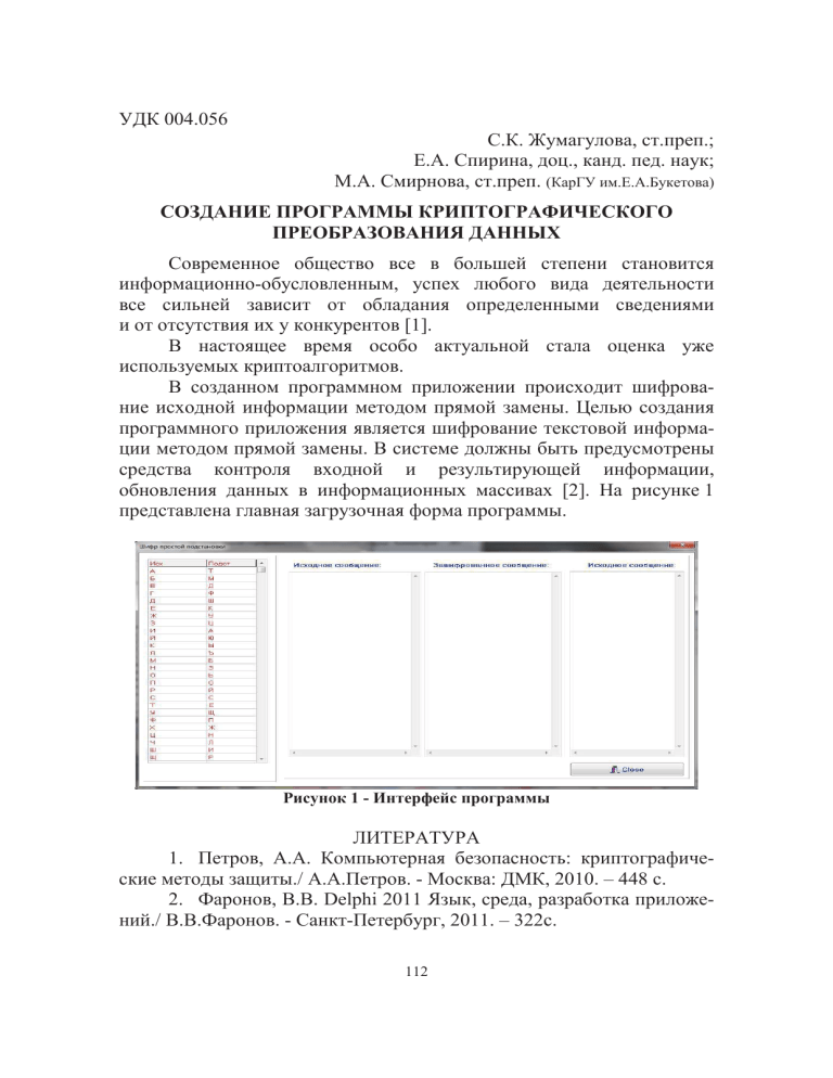 " 004.056 . . E*/ .*( , &).3 3.; . . 3 , 2., ' . 3 . *'; . . / , &).3 3. ( ! /. . . *' ) ) ( +) 2 2 0 6 + , 2 1) / (0 / + &) & (49 0 &) 3 &) )& 1 / 2 - *&( ( ,/, *&3 - (6 . ) (4 &) & & (4 0 & ) ) ( 3 ( ,/ & / ) )&*)&) - * ' '* ) [1]. &) + / & ')* (4 0 &) ( 2 ' * &3 (4 * /,- ' 3) (. )/ . & / 3 . // / 3 ( 3 &) 9 1 &0 1 / 2 / ) / 3 / 0 / ,. A (46 & 3 . // . 3 ( ( )& 9 1 ) '&) 0 1 / 2 / ) / 3 / 0 / ,. & &) / ( , ,)4 3 *&/ ) , & &) ' ) ( 0 *(4) *6+ 0 1 / 2 , ( ,1 / 2 ,- / && - [2]. &* ' 1 3 &) ( .( . * 1 / 3 . //,. " 1- $ %% 1. ) , . . /346) 3 & &)4: ' 3) . 1 &' / ) , + ),./ . . ) . &' : " , 2010. – 448 &. 2. 8 , . . Delphi 2011 ,', & , )' 3 ( 0./ . .8 .')- ) * ., 2011. – 322&. 112 -