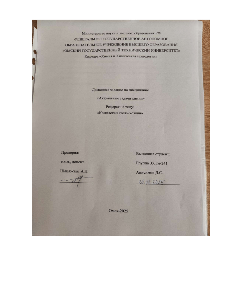 Содержание Введение ................................................................................................................... 3 1. Химия «хозяин-гость» ...................................................................................... 5 2. Понятия супрамолекулярной химии ............................................................... 7 3. Природа супрамолекулярных взаимодействий ........................................... 14 4. Классификация супрамолекулярных соединений ....................................... 18 5. Краун-эфиры и критерии устойчивости их комплексов ............................. 21 6. Области применения супромолекулярной химии ....................................... 23 Заключение ............................................................................................................ 25 Список литературы ............................................................................................... 26 2 Введение На первый взгляд может показаться, что данная тема носит исключительно теоретический характер. Но почему тогда исследования в области химии «гость-хозяин» были удостоены Нобелевской премии в 1967 году? На самом деле, данные исследования несли и огромную практическую значимость. Хотелось бы начать с того, что комплексы «гость- хозяин» являются предметом изучения супрамолекулярной химии. Данная область углубила понимание человека различных биохимических процессов в организме, о действии ферментов, механизм связывания гемоглобином кислорода. Но помимо этого комплексы «гость-хозяин» нашили свое практическое применение в технике, медицине, и сельском хозяйстве. Основателями супрамолекулярной химии считают выдающихся ученых, лауреатов Нобелевской премии 1987 г. американцев Чарльза Педерсена и Дональда Крама и француза Жан-Мари Лена. В 1987 г. они были удостоены Нобелевской премии по химии «за определяющий вклад в развитие химии макрогетероциклических соединений, способных избирательно образовывать молекулярные комплексы типа хозяин – гость». Супрамолекулярная химия считается молодой дисциплиной, которая берет свое начало с конца 60-х – начала 70-х годов прошлого века. Следует признать, что сегодня супрамолекулярная химия является одной из наиболее быстроразвивающихся областей науки. Наибольшее число научных публикаций за последние десятилетия относится к области супрамолекулярной химии. Это обусловлено ее уникальным междисциплинарным характером. Ее междисциплинарная природа привела к широкому сотрудничеству химиков, физиков, специалистов по компьютерному моделированию, кристаллографов, химиков-неоргаников, органиков-синтетиков, биохимиков, биологов, медиков. Что такое супрамолекулярная химия? Жан-Мари Лен, лауреат Нобелевской премии в своей Нобелевской лекции так определил связь классической молекулярной и супрамолекулярной химии. Молекулярная 3 химия – химия ковалентных связей – занимается изучением законов, управляющих структурой, свойствами и превращениями молекулярных частиц. Она исследует структуру, свойства и превращения отдельных молекул. Она имеет дело главным образом с реакциями, в которых происходят разрыв и образование валентных связей. Супрамолекулярная химия лежит за пределами классической химии. Ее можно охарактеризовать как «химию за пределами молекулы», изучающую более сложные ассоциации двух и более химических частиц, удерживаемых вместе межмолекулярными силами. Объектом изучения супрамолекулярной химии служат водородная почти связь, исключительно электростатические невалентные взаимодействия взаимодействия: (π-π, диполь- ди