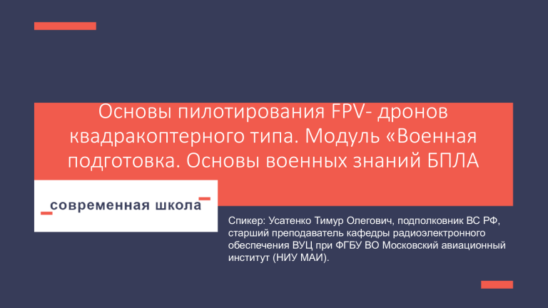 Спикер: Усатенко Тимур Олегович, подполковник ВС РФ,
