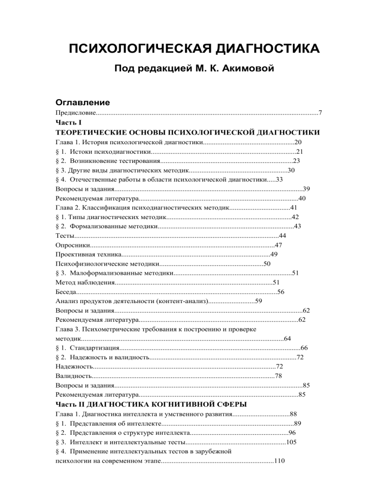 § 2. Надежность и валидность..................................................................................72
