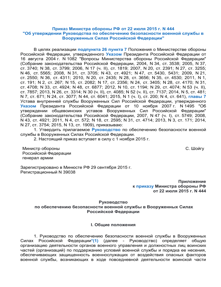 Приказ Министра обороны РФ от 22 июля 2015 г. N 444