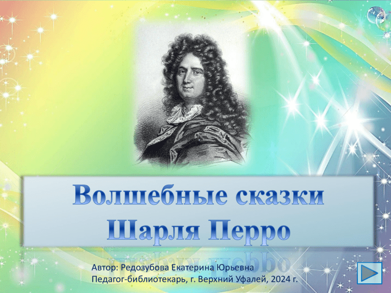 Автор: Редозубова Екатерина Юрьевна Педагог-библиотекарь, г. Верхний Уфалей, 2024 г. Инструкция На игровом поле дано 5 категорий с 5 вопросами. Каждый игрок выбирает категорию и вопрос с ценой ответа. Проверить себя можно, нажав на карточку с вопросом. Кто наберёт наибольшее количество баллов, тот будет победителем. Вернуться на игровое поле можно при помощи стрелки На сыгравшей цене вопроса при возврате появляется синяя рамочка. Завершить игру можно при помощи кнопки выход Начать игру «Кот в сапогах» 10 20 30 40 50 «Красная шапочка» 10 20 30 40 50 «Золушка» 10 20 30 40 50 «Мальчик-с-пальчик» 10 20 30 40 50 «Спящая красавица» 10 20 30 40 50 «Кот в сапогах» 10 Сколько братьев было у Два старших брата. главного героя? «Кот в сапогах» 20 Какое богатство нажил Кота, осла да мельницу отец младшего сына? «Кот в сапогах» 30 Кем работал отец Мельником будущего маркиза? «Кот в сапогах» 40 Что лежало в мешке у кота Отруби во время и капуста охоты на зайцев? «Кот в сапогах» 50 В кого успел превратиться великан, чтобы Во льва и мышонка продемонстрировать свою силу коту? «Красная шапочка» 10 Кто подарил девочки её Бабушка шапочку? «Красная шапочка» 20 Что должна была Пирожок и горшочек с отнести внучка маслом бабушке? «Красная шапочка» 30 По какой дороге отправил волк внучку к По самой длинной дому бабушки? «Красная шапочка» 40 Каким образом Нужно просто потянуть открывалась дверь в за веревку бабушкин дом? «Красная шапочка» 50 Кто спас бабушку и Дровосеки внучку? «Золушка» 10 Сколько было детей у Две мачехи? «Золушка» 20 Что фея сделала Каретуиз тыквы? «Золушка» 30 Из кого получился Из крысы кучер? «Золушка» 40 В какое время девушка должна Не позже была 12 часов оказаться ночи дома? «Золушка» 50 В кого должны были превратиться лакеи, если В 6 ящериц девушка не успеет вовремя вернутся домой? «Мальчик-с-пальчик» 10 Сколько братьев было у 6 братьев маленького героя? «Мальчик-с-пальчик» 20 Как маленький герой узнал, Подслушал разговор что отец собирается отвести его с братьями в родителей лес? «Мальчик-с-пальчик» 30 Кто открыл дверь лесной Жена людоеда избушки ребятам? «Мальчик-с-пальчик» 40 На что поменял смышленый мальчик На шапки братьев короны маленьких людоедок? «Мальчик-с-пальчик» 50 Почему супруга людоеда Она поверила, что на отдала малышу все и мужа напали разбойники, богатства супруга? они требуют выкуп. «Спящая красавица» 10 Сколько волшебниц Семь на пригласили праздник? «Спящая красавица» 20 Сколько лет должна была принцессаСто находится во власти сна? 30 Почему восьмая фея Ей не хватило столовых обиделась на приборов из золота королевскую семью? «Спящая красавица» 40 Кто рассказал сыну Старик-крестьянин короля о странном замке? «Спящая красавица» 50 Как звали собачку Пуфф принцессы? Ссылки на интернет-источники https://razrisyika.ru/img/cat-sharl-perro-3513 https://www.bolshoyvopros.ru/questions/3462668-viktorina-po-skazkamsharlja-perro-kakie-voprosy-zadat-s-otvetami.html https://school592.ru/development/kot-v-sapogah-skazka-citat-onlajn-kot-vsapogah.html https://sparklogic.ru/portal/2023/11/risunki-krasnoj-shapochki-i-volka https://gas-kvas.com/detskie-risunki/print:page,1,5067-detskij-risunok-kskazke-zolushka-53-foto.html https://razrisyika.ru/img/cat-malchik-s-palchik-sharl-perro-13022 https://triptonkosti.ru/6-kartinki/spyaschaya-krasavica-skazka-chitat-skartinkami.html