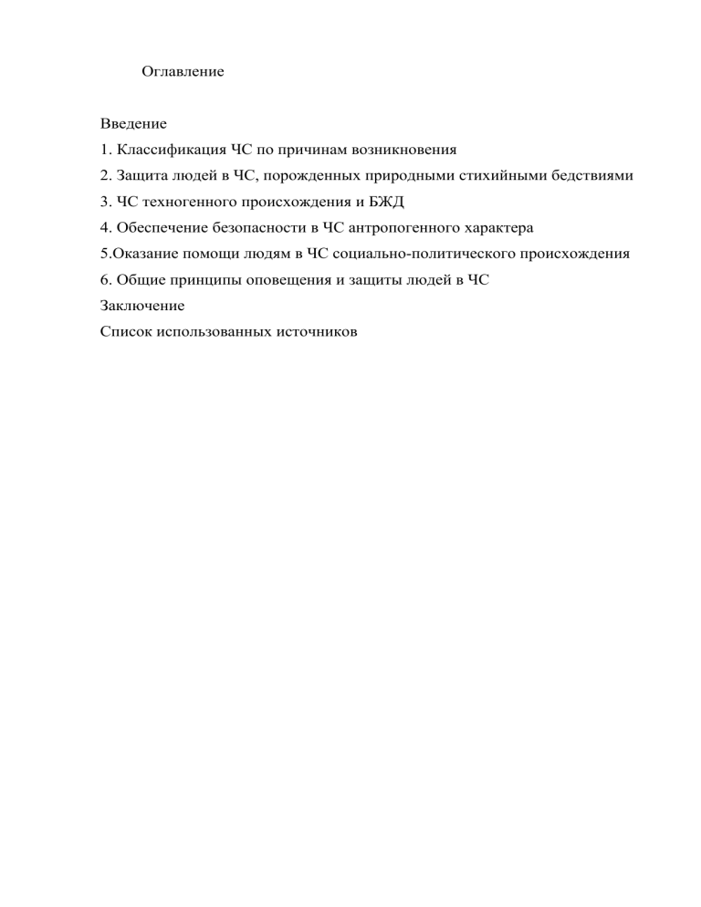 Оглавление Введение 1. Классификация ЧС по причинам возникновения 2. Защита людей в ЧС, порожденных природными стихийными бедствиями 3. ЧС техногенного происхождения и БЖД 4. Обеспечение безопасности в ЧС антропогенного характера 5.Оказание помощи людям в ЧС социально-политического происхождения 6. Общие принципы оповещения и защиты людей в ЧС Заключение Список использованных источников Введение чрезвычайный ситуация защита человек Общество с давних пор стремится регулировать межличностные отношения, не только путем формирования традиций, нравственных устоев, правил этикета, но и создавая различные нормативные и законодательные акты, предусматривающие меру ответственности за нарушение тех или иных норм поведения человека в обществе. В настоящее время, однако, этого недостаточно и поэтому возникла необходимость целенаправленного обучения людей умению защищать себя от опасностей в чрезвычайных ситуациях. К событий чрезвычайным ситуациям относят и сложившихся на условий, совокупность данной чрезвычайных территории. Причины возникновения этих ситуаций могут иметь различный характер. Так, например, ежегодно в России умирают сотни тысяч людей от отравлений алкогольной продукцией, пристрастия к наркотикам, участвуя в массовых беспорядках, убийствах, самоубийствах, несчастных случаев в быту и на производстве. Таким образом, мы живем среди опасностей, которые подстерегают нас на каждом шагу, и мы чаще всего оказываемся, не готовы к встрече с ними и вопросы адаптации и выживания человека в современном мире должны занимать одно из приоритетных направлений развития общества. Возникновение чрезвычайных ситуаций различного характера (природного, техногенного, социального: массовые беспорядки, терроризм, противоправные (криминальные) деяния и т.д.) стимулируют развитие целого комплекса наук и научных дисциплин - «безопасность жизнедеятельности человека», в том числе безопасность в обществе. [1, 2, 3] 1. Классификация ЧС по причинам возникновения Все чрезвычайные ситуации могут быть классифицированы по значительному количеству признаков, описывающих эти явления с различных характерных сторон их природы и свойств. Каждая ЧС имеет свою физическую сущность, свои, только ей присущие причины возникновения, движущие силы развития, свои особенности воздействия на человека и окружающую среду. Классификация чрезвычайных ситуаций по причинам возникновения подразделяется на: Стихийные бедствия. Это различные явления природы, вызывающие внезапные нарушения нормальной жизнедеятельности населения, а также разрушения и уничтожение материальных ценностей. Они нередко оказывают отрицательное воздействие на окружающую природу. К стихийным бедствиям обычно относятся землетрясения, наводнения, селевые потоки, оползни, снежные заносы, извержения вулканов, обвалы, засухи, ураганы, бури. К таким бедствиям в ряде случаев могут быть отнесены также пожары, особенно массовые лесные и торфяные. Техногенные катастрофы. Техногенной катастрофой принято называть катаклизм, вызванный аномалиями технологических систем. При этом имеются в виду не только их случайные либо неслучайные сбои, неисправности и поломки, но и непредвиденные и нежелательные последствий их штатного функционирования. Такое определение позволяет сразу же отсечь как р