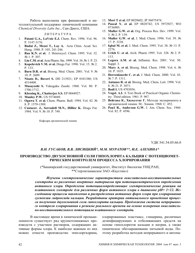 химическое обеззараживание питьевой воды. Поэтому разработка методов непрерывного и автомаХИМИЯ И ХИМИЧЕСКАЯ ТЕХНОЛОГИЯ 2004 том 47 вып. 3