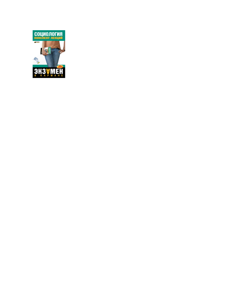 Сергей Александрович Давыдов Социология: конспект лекций Текст предоставлен издательством «Эксмо» http://www.litres.ru/pages/biblio_book/?art=179678 Социология. Конспект лекций: Эксмо; Москва; 2008 ISBN 978-5-699-24122-4 Аннотация Конспект лекций представляет собой подбор материала по курсу «Социология», охватывает основные темы программы. Издание предназначено для студентов средних и высших учебных заведений. Книга станет отличным помощником при подготовке к зачету или экзамену, а также для написания курсовых и контрольных работ. С. А. Давыдов. «Социология: конспект лекций» Содержание ЛЕКЦИЯ № 1. Социология как наука 1. Предмет, объект, функции и методы социологии 2. Социология в системе гуманитарных наук 3. Структура социологии 4. Система основных категорий и законов в социологии 5. Основные парадигмы социологии ЛЕКЦИЯ № 2. Становление и основные этапы развития социологии 1. Особенности донаучного изучения общества 2. Социальные и теоретические предпосылки возникновения социологии как науки 3. Социологическое воззрение О. Конта 4. Классическая социология начала XX в 5. Социология марксизма. Материалистическое понимание истории. Концепция общественно-экономической формации и социальной революции 6. «Формальная» школа социологии Г. Зиммеля, Ф. Тенниса и В. Парето 7. Американская социология: основные этапы развития 8. Особенности исторического развития российской социологии ЛЕКЦИЯ № 3. Общество как целостная система 1. Понятие общества 2. Основные подсистемы общества 3. Типологии обществ 4. Гражданское общество, его признаки и основания 5. Развитие общества. Понятия эволюции, прогресса и модернизации ЛЕКЦИЯ № 4. Социальная структура и стратификация 1. Социальная структура и ее исторические типы 2. Социальная структура современного российского общества 3. Теории социальной стратификации 4. Социальная мобильность и групповая замкнутость ЛЕКЦИЯ № 5. Социология личности 1. Личность как субъект общественных отношений. Структура личности 2. Типология личности 3. Социальные статусы и роли. Роль статусно-ролевой структуры общества 4. Социализация личности. Механизмы и агенты социализации ЛЕКЦИЯ № 6. Социальные общности 1. Виды социальных общностей и их характерные черты 2. Социальная группа как объект социологического изучения. Виды социальных групп 3. Социальные квазигруппы. Социальный феномен толпы. Особенности поведения людей в толпе 4. Социология этнических общностей 6 6 8 10 12 14 16 16 18 20 22 24 26 28 30 33 33 35 37 39 41 43 43 45 47 50 52 52 54 56 58 61 61 63 66 68 3 С. А. Давыдов. «Социология: конспект лекций» 5. Организация как объект изучения социологии 6. Сущность, структура и типология социальных организаций ЛЕКЦИЯ № 7. Социальные институты 1. Понятие социального института. Признаки, роль и значение социальных институтов 2. Социальный контроль и девиантное поведение 3. Экономика как социальный институт 4. Политические общественные институты 5. Социальные институты образования и науки 6. Религия как социальный институт 7. Семья и брак как социальные институты общества ЛЕКЦИЯ № 8. Социальные действия и отношения 1. Теория социального действия в социологии 2. Модели анализа межличностного взаимодействия 3. Социальные отношения ЛЕКЦИЯ № 9. Социальные конфликты 1. Социальный конфликт в социологической теории 2. Виды конфликтов 3. Компромисс и консенсус как формы завершения социального конфликта ЛЕКЦИЯ № 10. Кул