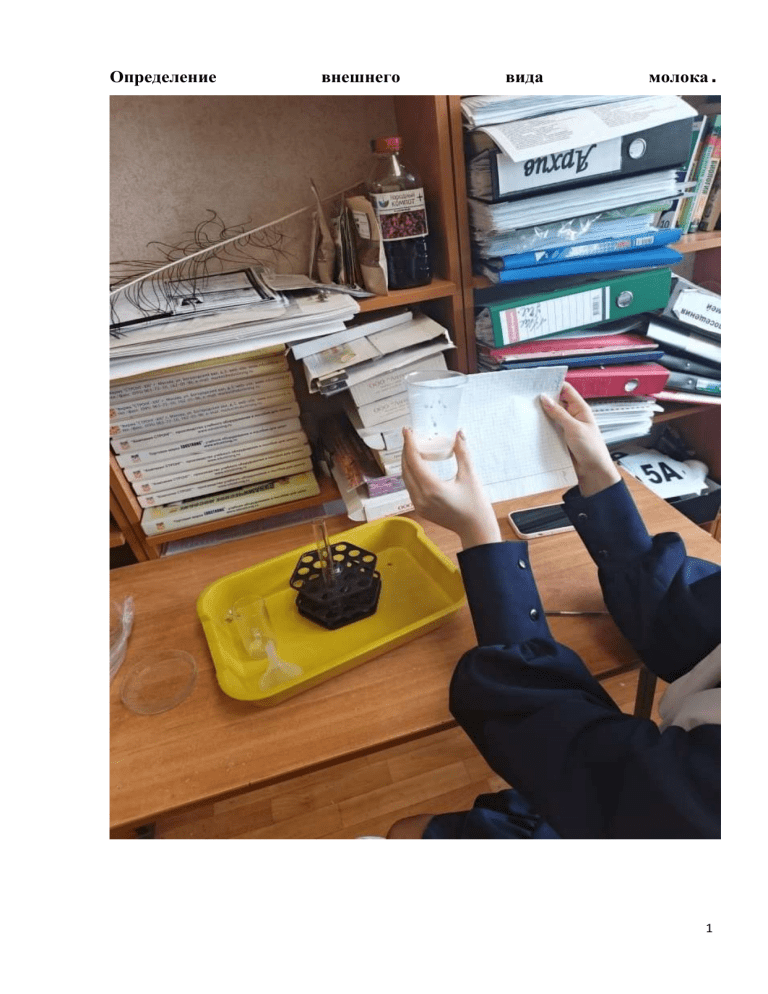Определение внешнего вида молока. 1 2 Определение белка в молоке. 3 Определение запаха молока. 4 Определение вкуса молока. 5