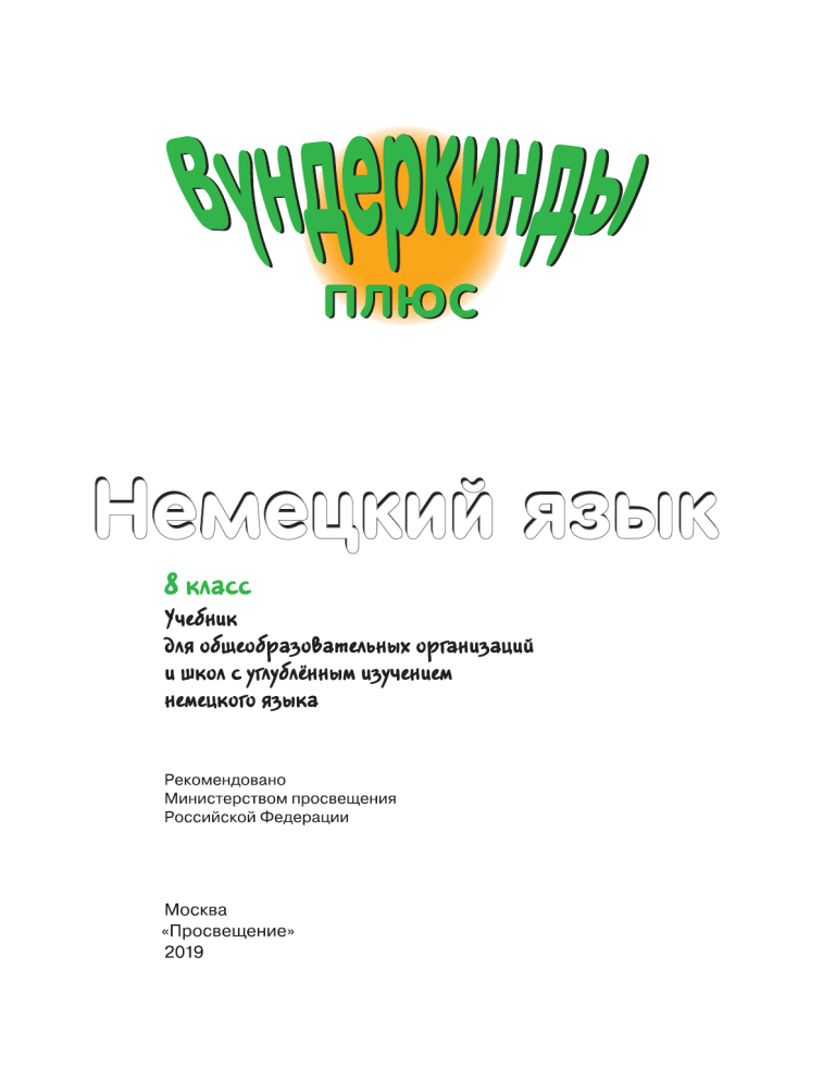 УДК 373:811.112.2+811.112.2(075.3) ББК 81.432.4я721.6 Н50 Серия «Вундеркинды Плюс» основана в 2017 году На учебник получены положительные заключения научной (заключение РАО № 1111 от 18.11.2016 г.), педагогической (заключение РАО № 1002 от 21.11.2016 г.) и общественной (заключение РКС № 563-ОЭ от 19.12.2016 г.) экспертиз. Авторы: О. А. Радченко, И. Ф. Конго, У. Гертнер, А. Н. Карелин Hörverstehen Введение нового грамматического материала Страноведческая информация о Германии Послушай звукозапись U n s e r T i p p ! Н Наш совет!! Выполни задание в отдельной тетради R e d e m i t t e l Речевые средства Повторение грамматического материала Projekt Творческое индивидуальное или групповое задание на основе пройденного материала K o m m e n t a r : Комментарий-словарь B e i s p i e l : Сделай задание по образцу Подготовительная проверочная работа I n t e r e s s a n t ! http://www.kuffler.com Подведение итогов пройденной главы Дополнительная информация в Интернете Немецкий язык. 8 класс : учеб. для общеобразоват. организаций и шк. Н50 с углубл. изучением нем. яз. / [О. А. Радченко, И. Ф. Конго, У. Гертнер, А. Н. Карелин]. — М. : Просвещение, 2019. — 240 с. : ил. — (Вундеркинды Плюс). — ISBN 978-5-09-072108-0. Учебник является составной частью УМК «Немецкий язык» серии «Вундеркинды Плюс» для 8 класса общеобразовательных организаций и школ с углублённым изучением немецкого языка. Материал учебника составлен интернациональным авторским коллективом. Сюжетная основа, разворотный принцип подачи материала (один разворот содержит материал одного сорокаминутного урока), наличие дополнительного модуля Extra-Blätter с заданиями на отработку грамматических навыков даёт возможность учителю проводить уроки с максимальной эффективностью в группах с любым уровнем обученности. УДК 373:811.112.2+811.112.2(075.3) ББК 81.432.4я721.6 ISBN 978-5-09-072108-0 2 © Издательство «Просвещение», 2019 © Художественное оформление. Издательство «Просвещение», 2019 Все права защищены Дорогие друзья! Перед вами новый учебник по немецкому языку серии «Вундеркинды Плюс», и нам, авторам, очень хотелось бы, чтобы он вам понравился. Надеемся, что учебники для 5–7 классов помогли вам преодолеть трудности немецкой лексики и грамматики, вы узнали много интересного о людях, культуре и обычаях, городах и достопримечательностях Германии и немецкоязычных стран, а также обогатили свои познания в русском языке, узнали много интересного о российских городах и культуре России. С учебником по немецкому языку для 8 класса вы продолжите своё знакомство с языком и культурой Германии вместе с учеником восьмого класса Димой Лебедевым, который приехал по школьному обмену из Сочи в Мюнхен, чтобы совершенствовать свой немецкий язык. Он будет учиться в гимназии имени герцогини Луизы, познакомится с немецкими сверстниками, будет проводить с ними свободное время, гулять по Мюнхену, знакомиться с его достопримечательностями. Его также ждут интересные знакомства и открытия. Диме поможет освоиться в немецком городе семья Краузе, в которой он будет жить во время учёбы. В семье живут мама и папа, их сын Лука — сверстник Димы, с которым он будет учиться в одном классе, и ещё Конни, сестра Луки, которая очень понравится Диме. Что будет дальше, узнаете сами, когда прочитаете учебник до конца. Вам предстоит ещё много узнать и многому научиться. Вы сможете сравнить учёбу в нашей школе с учёбой в немецкой гимназии, узнаете, где и как учатся немецкие подростки, где они 