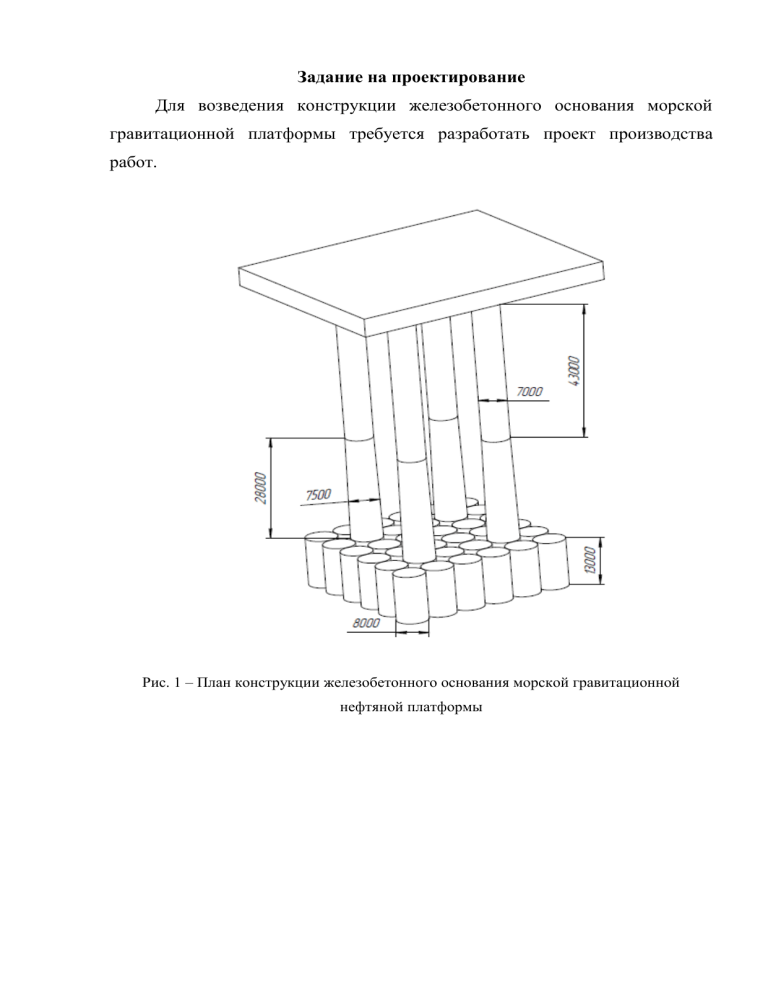 Задание на проектирование Для возведения конструкции железобетонного основания морской гравитационной платформы требуется разработать проект производства работ. Рис. 1 – План конструкции железобетонного основания морской гравитационной нефтяной платформы 1. Компоновка опалубочных форм с разработкой схем расстановки щитов и элементов опалубки 1.1 Расчет потребности комплектующих элементов опалубки Ведомость объемов опалубочных работ составляется после принятия решения о типе и конструктивной схемы опалубки (табл 8.1). Выбор щитов опалубки для основания платформы круглого сечения диаметром 8 м: Lокр н = 25,12 м; Lокр в = 18,84 м; N1 𝑁1 = 25,12⋅12 3×3 + Lокр н h1 Sопал 18,84⋅12 3×3 Lокр в h1 Sопал (8.1) = 33,49 + 25,12 = 59шт Выбираем щиты 3х3 в количестве 59 штук на 4 уровня. 𝑁2 = 25,12⋅1 3×1 + 18,84⋅1 3×1 = 8,37 + 6,28 = 15шт Выбираем щиты 3х1 в количестве 15 штук на 1 уровень. Выбор щитов опалубки для основания платформы круглого сечения диаметром 7,5 м: Lокр н = 23,55 м; Lокр в = 17,27 м; N1 23,55 27 17, 27 27 70,65 51,81 123 шт 3 3 3 3 Выбираем щиты 3х3 в количестве 123 штук на 9 уровней. N2 23,55 1 17, 27 1 7,85 5,75 14 шт 3 1 3 1 Выбираем щиты 3х1 в количестве 14 штук на 1 уровень. Выбор щитов опалубки для основания платформы круглого сечения диаметром 7 м: Lокр н = 21,98 м; Lокр в = 15,70 м; N1 21,98 42 15,70 42 102,57 73, 26 176 шт 3 3 3 3 Выбираем щиты 3х3 в количестве 176 штук на 14 уровней. N2 21,98 1 15,70 1 7,33 5, 23 13 шт 3 1 3 1 Выбираем щиты 3х1 в количестве 13 штук на 1 уровень. Таблица 8.1 Ведомость объемов опалубочных работ № Наименование Размер, мм Кол-во, шт. Площадь, м2 1 Щит наружный для 3000×3000 34*36=1224 1224*9=11016 основания платформы 3000×1000 9*36=324 324*3=972 Щит внутренний для 3000×3000 26*36=936 936*9=8424 основания платформы 3000×1000 7*36=252 252*3=756 Щит наружный для 3000×3000 71*4=284 284*9=2556 основания платформы 3000×1000 8*4=32 32*3=96 Щит внутренний для 3000×3000 52*4=216 216*9=1944 основания платформы 3000×1000 6*4=24 24*3=72 Щит наружный для 3000×3000 103*4=412 412*9=3708 основания платформы 3000×1000 8*4=32 32*3=96 Щит внутренний для 3000×3000 74*4=296 296*9=2664 основания платформы 3000×1000 6*4=24 24*3=72 4056 32436 круглого сечения диаметром 8 м. 2 круглого сечения диаметром 8 м. 3 круглого сечения диаметром 7,5 м. 4 круглого сечения диаметром 7,5 м. 5 круглого сечения диаметром 7 м. 6 круглого сечения диаметром 7 м. Итого: 36 – количество опор диаметром 8 метров; 4 – количество опор диаметром 7.5 метров; 4 – количество опор диаметром 7 метров. По поводу уровней: Разберем опоры диаметром 8 метров. Судя по конструкции, мы видим высоту 13 метров, высота не делится 3, ибо у нас высота щита 3 метра. Для этого мы разбиваем 13 метров на 12 метров +1 метр доборочный. Вставляем в формулу 12 метров и получаем 59 шт. Значит у нас 4 уровня используется 59 штук. Затем у нас же используется один метр доборки, значит мы должны посчитать сколько используется для одного метра штук. Аналогично проводим расчеты диаметром 7,5 и 7.