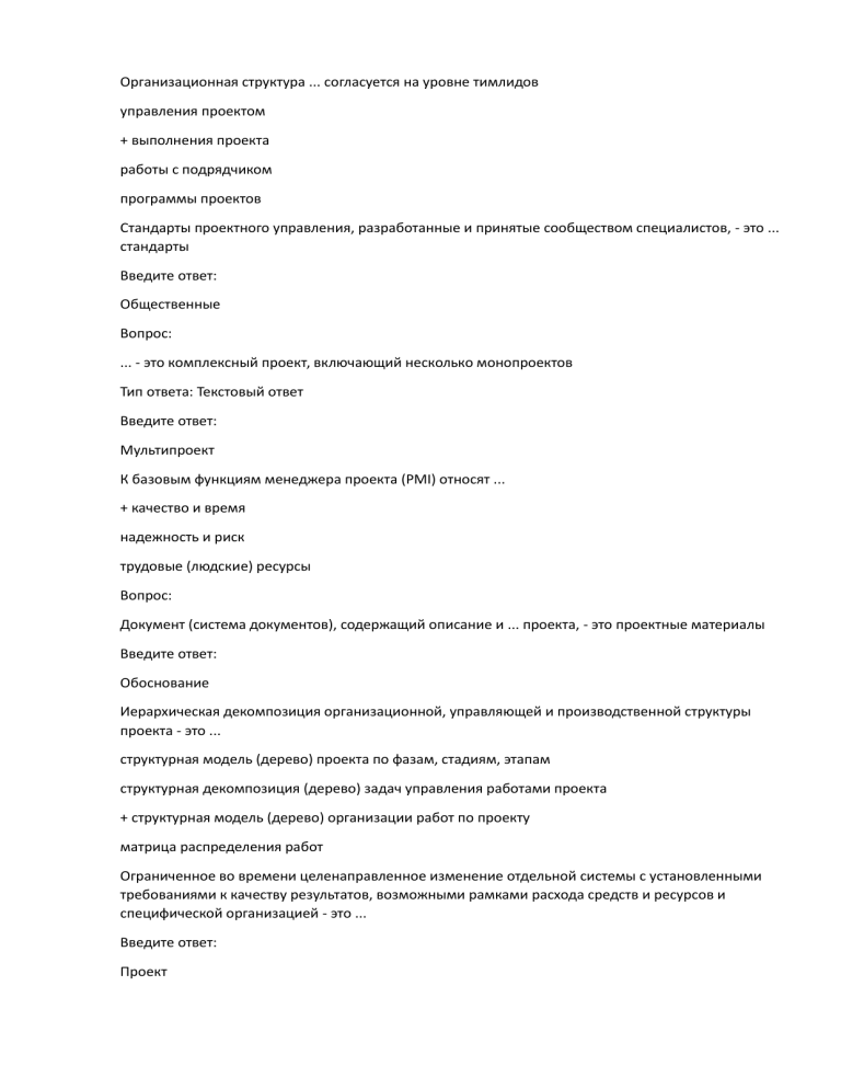 Тип ответа: Текстовый ответ
