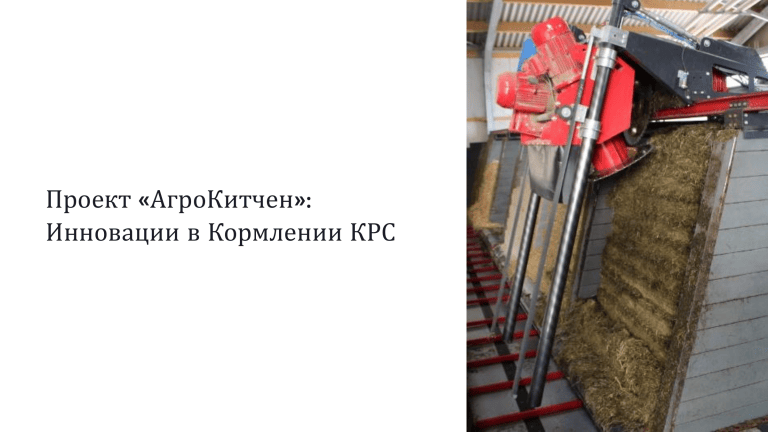 Проект «АгроКитчен»: Инновации в Кормлении КРС Проблематика и Убытки Молочных Хозяйств Высокая трудоёмкость процессов Неточность дозировки и смешивания Ручное приготовление и раздача кормов ведут к потерям Нестабильность рациона снижает молочную до 1 млн рублей в год на каждые 200 голов из-за продуктивность на 10–15%, что оборачивается убытками до дополнительных трудозатрат и неэффективного 8,7 млн рублей в год для фермы в 200 голов. использования рабочего времени. Попадание инородных предметов Отсутствие цифровизации и контроля Металлические и пластиковые элементы в кормах Недостаток оперативного мониторинга увеличивает вызывают травмы и заболевания. Ежегодные потери могут ошибки в управлении рационом, что приводит к достигать 300–500 тысяч рублей на ферму в 200 голов. недополучению прибыли до 500 тысяч рублей в год. В сумме, средние потери для фермы на 200 голов составляют ориентировочно 10,7 млн рублей в год, что подчеркивает критическую важность решения, предлагаемого «АгроКитчен». Цель и Задачи Проекта «АгроКитчен» Наша главная цель — создание доступной интеллектуальной роботизированной системы кормоприготовления, интегрированной с искусственным интеллектом, для оптимизации процессов кормления крупного рогатого скота. 1 Автоматизация кормления Полностью автоматизировать процесс приготовления и раздачи кормов, минимизируя ручной труд. 2 Снижение человеческого фактора Исключить ошибки, связанные с ручным дозированием и смешиванием, повышая стабильность рациона. 3 Повышение продуктивности и качества Обеспечить оптимальный рацион для максимальной молочной продуктивности и здоровья стада. 4 Интеграция ИИ и компьютерного зрения Внедрить передовые технологии для точного контроля за качеством кормов и их потреблением. 5 Локализация производства и обслуживания Развивать отечественное производство и обеспечивать локализованную сервисную поддержку. Участие в Образовательных и Грантовых Инициативах Проект «АгроКитчен» активно участвует в образовательных и грантовых программах, что способствует его развитию и повышению профессиональных компетенций команды. Акселератор Сбера Грантовая Программа «СТАРТ» Успешное прохождение образовательного Подготовлена и подана заявка на грантовую трека акселератора Сбера позволило программу «СТАРТ» Фонда содействия углубить предпринимательские инновациям, что открывает возможности компетенции и освоить современные для привлечения дополнительного подходы к стартап-менеджменту. финансирования. Роль Программ Эти программы играют ключевую роль в развитии проекта, предоставляя доступ к экспертным знаниям, наставничеству и сетевым связям, необходимым для успешного запуска стартапа. Целевая Аудитория и Сегментация Рынка Целевая аудитория проекта «АгроКитчен» включает различные сегменты сельскохозяйственных предприятий, заинтересованных в оптимизации процессов кормления и повышении рентабельности. Наш фокус на доступности и адаптации к российским условиям делает наше решение привлекательным для широкого круга клиентов. Основные Сегменты Рынка Портрет Типового Клиента • Средние фермы (200–800 голов) Наш типовой клиент — руководитель или зоотехник, • Племенные хозяйства стремящийся к стабильному рациону и готовый • Агрохолдинги • Университетские фермы инвестиро